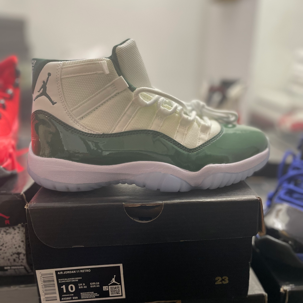Experience unparalleled style and comfort with the Jordan 11 'Green', now available at Theshop. As a locally owned business, we pride ourselves on offering top-tier customer service and the latest in footwear trends. These iconic sneakers feature a vibrant green colorway, premium materials, and exceptional design, making them a must-have for any sneaker enthusiast. Visit Theshop today to elevate your sneaker game and enjoy the personalized shopping experience you deserve.