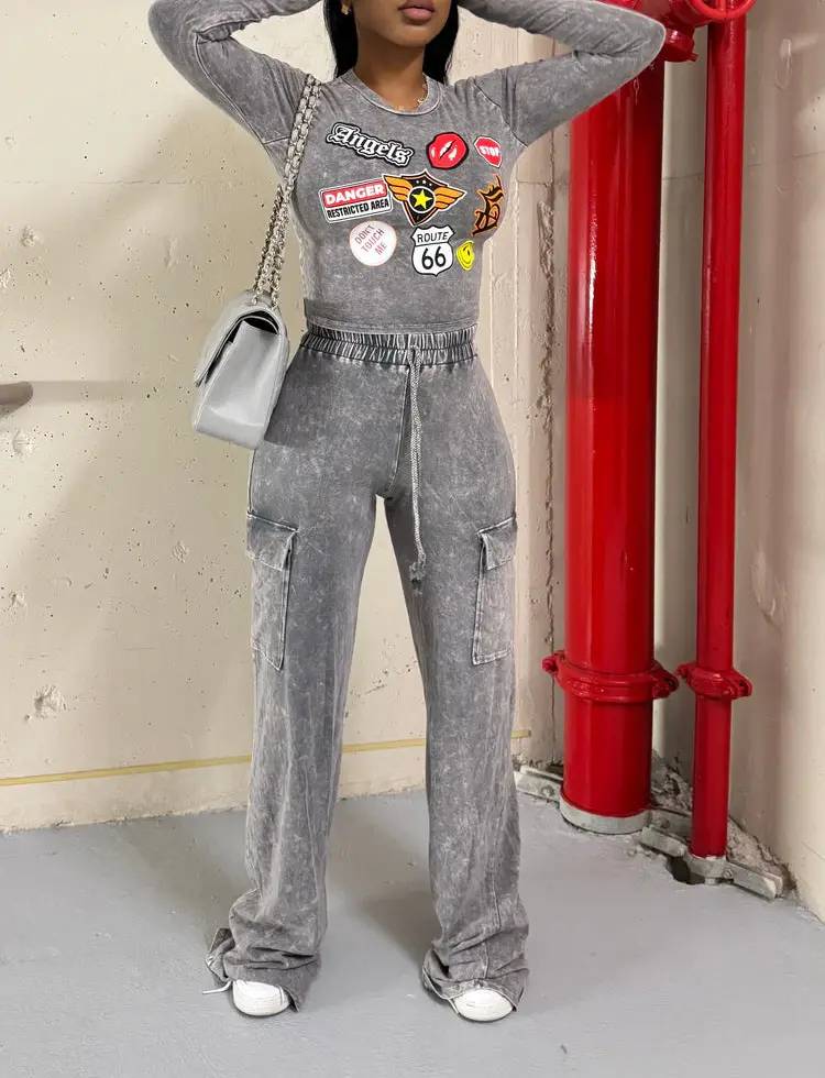 Washed Graphic Top & Pants Set