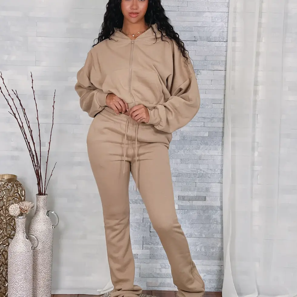 Zip Down Hoodie & Stacked Pants Set
